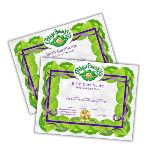 Cabbage Patch Acta de Nacimiento Genérica en blanco (Solo certificado de nacimiento) *No incluye muñeco.